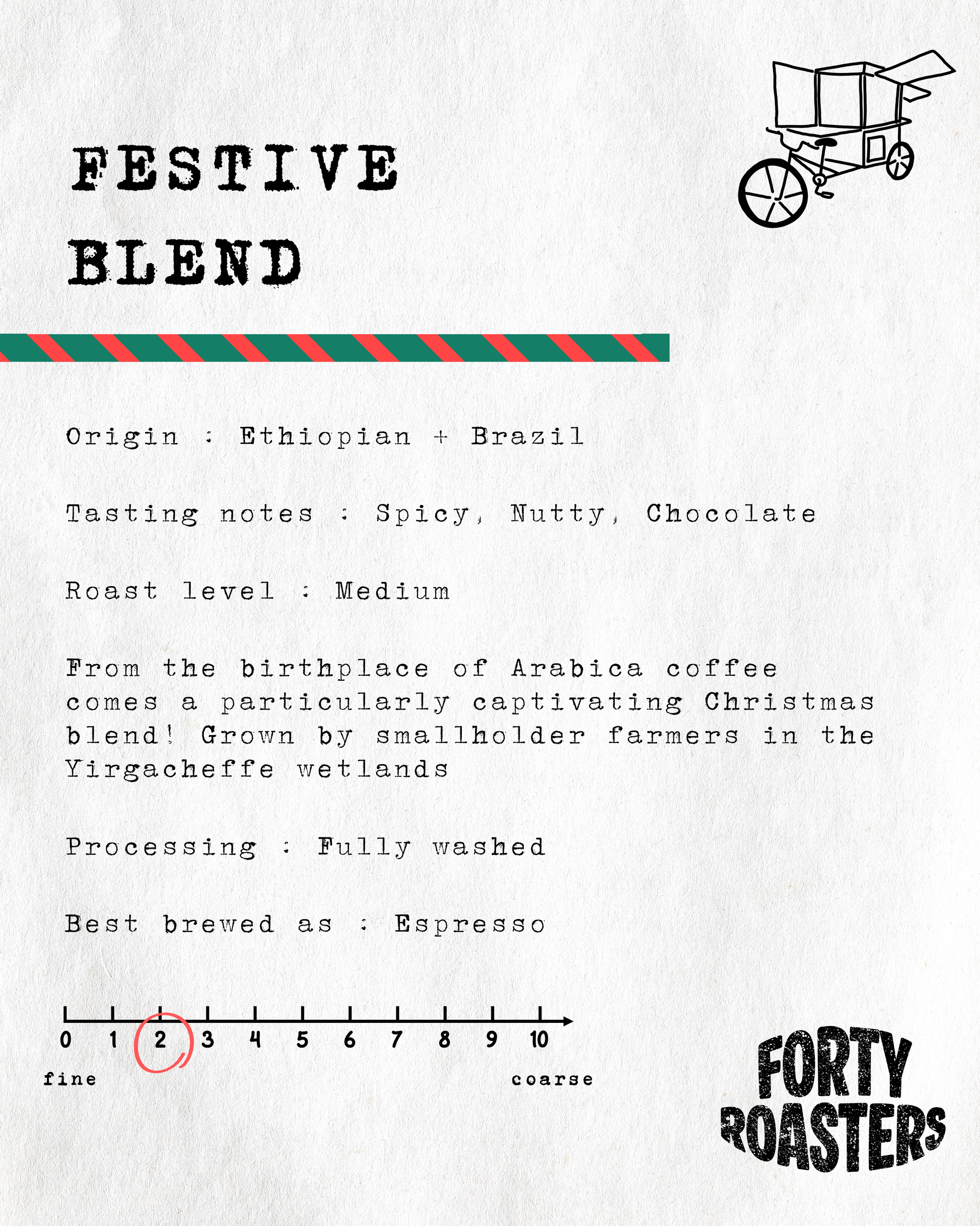 A festive blend of Ethiopian and Brazilian beans - spicy, warm and chocolatey!